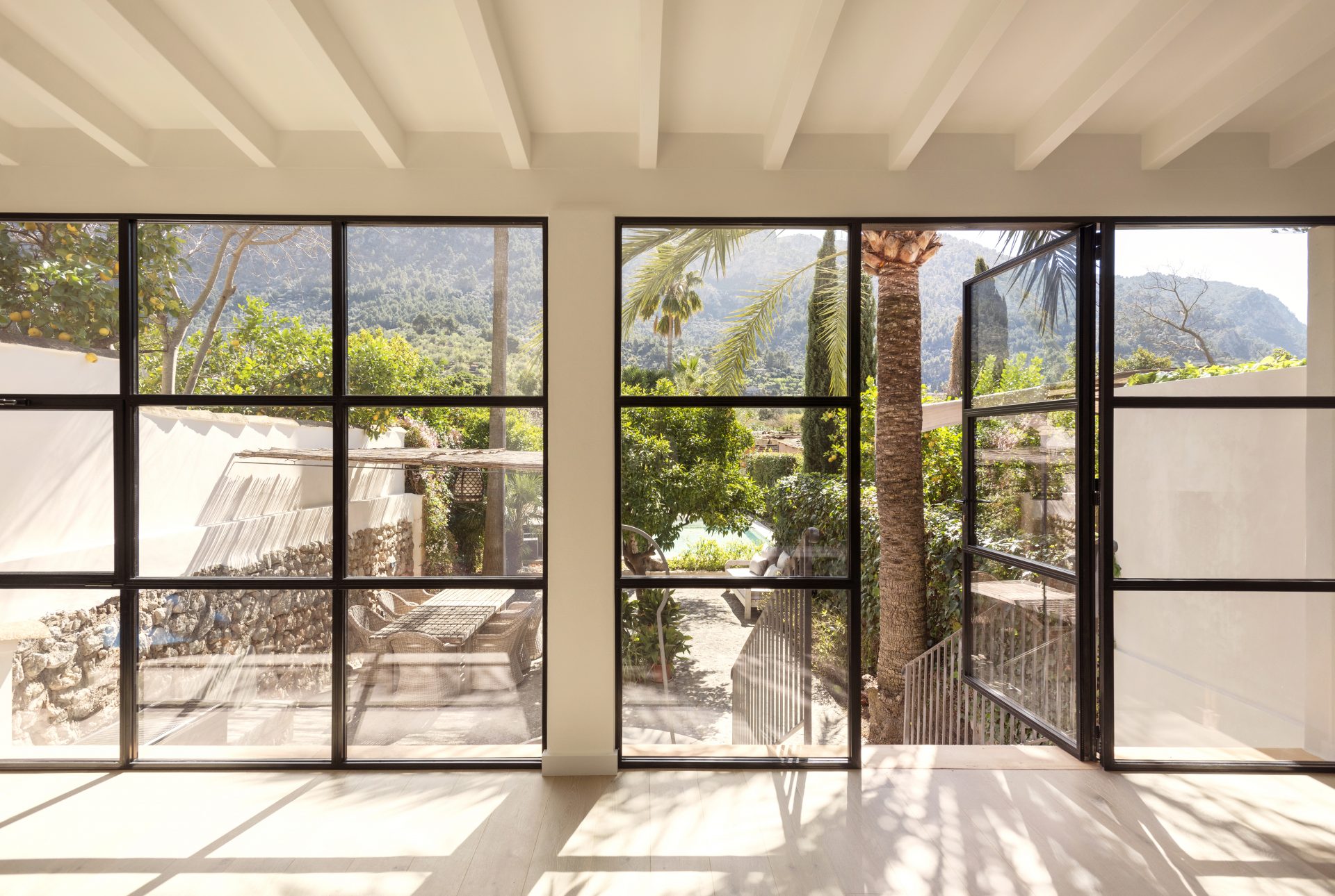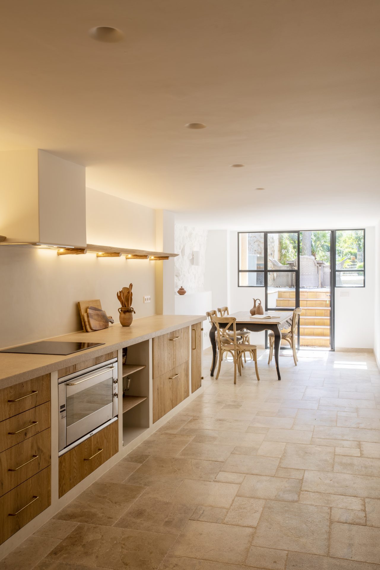 En esta casa típica de pueblo, se ha reformado el interior para crear espacios más modernos, acogedores y luminosos con el uso de materiales como el vidrio, el metal y acabados pulidos. En el jardín también se han hecho algunos cambios para disfrutar casi todo el año del exterior.
