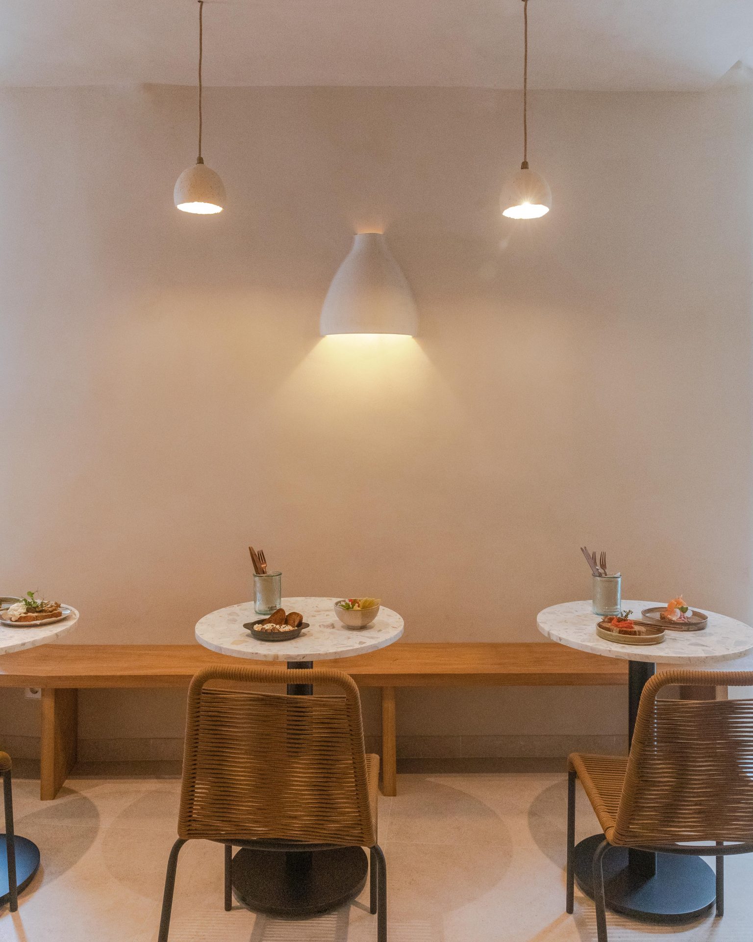En este proyecto, nuestro equipo dio vida a un espacio cálido y acogedor que combina funcionalidad, diseño y confort. El local se caracteriza por líneas limpias, materiales naturales y una paleta neutra que potencia la luz natural. Los acabados en microcemento, la carpintería artesanal y la iluminación tenue crean una atmósfera relajada, ideal para disfrutar de un café o un desayuno. Cada detalle —desde las estanterías flotantes hasta las mesas de mármol y el mobiliario en fibras naturales— fue cuidadosamente seleccionado para reflejar la identidad del negocio y ofrecer una experiencia única a sus clientes.